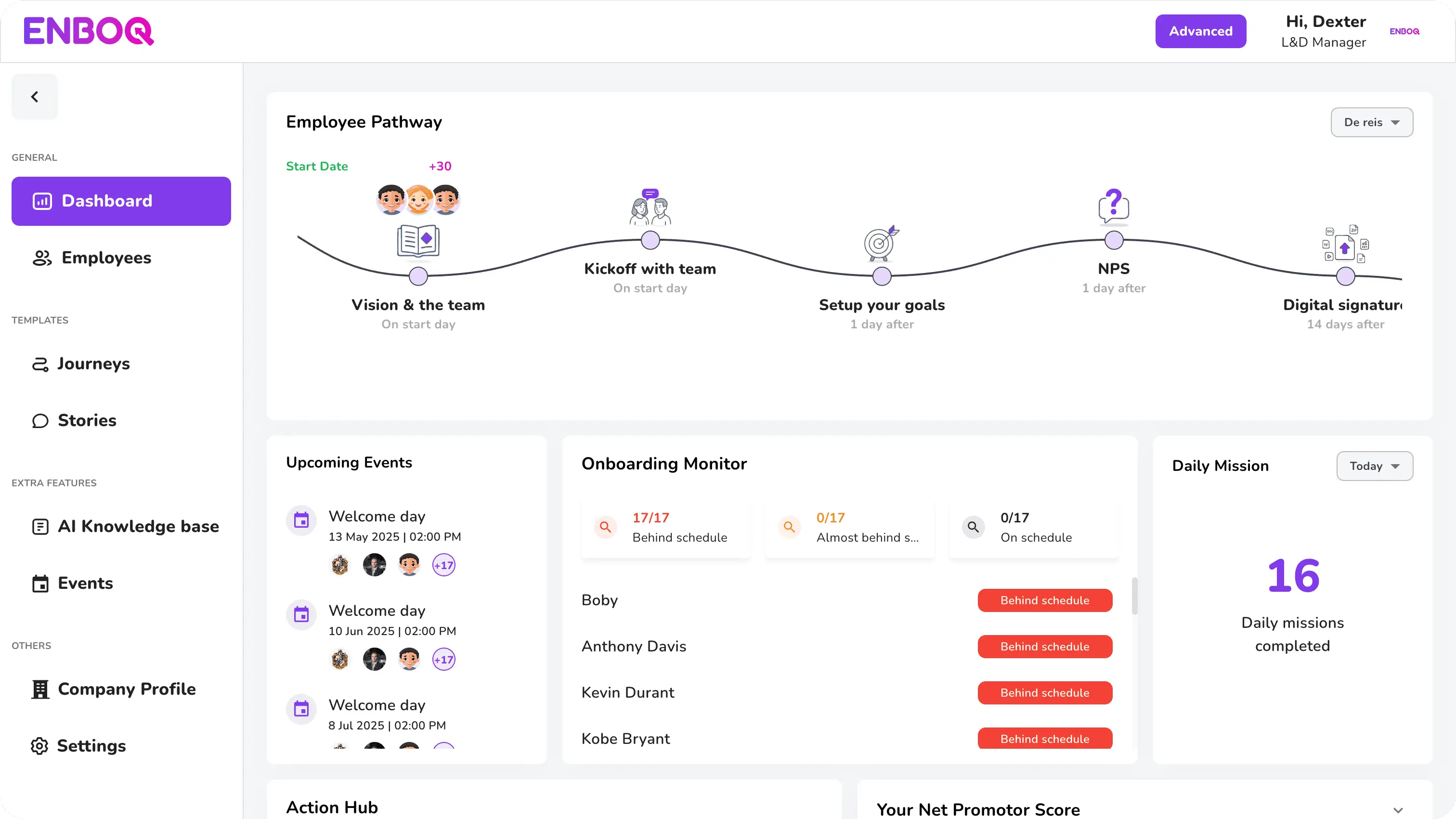 Customized process per employee, always up-to-date stakeholders and automatically assigned the best buddy!